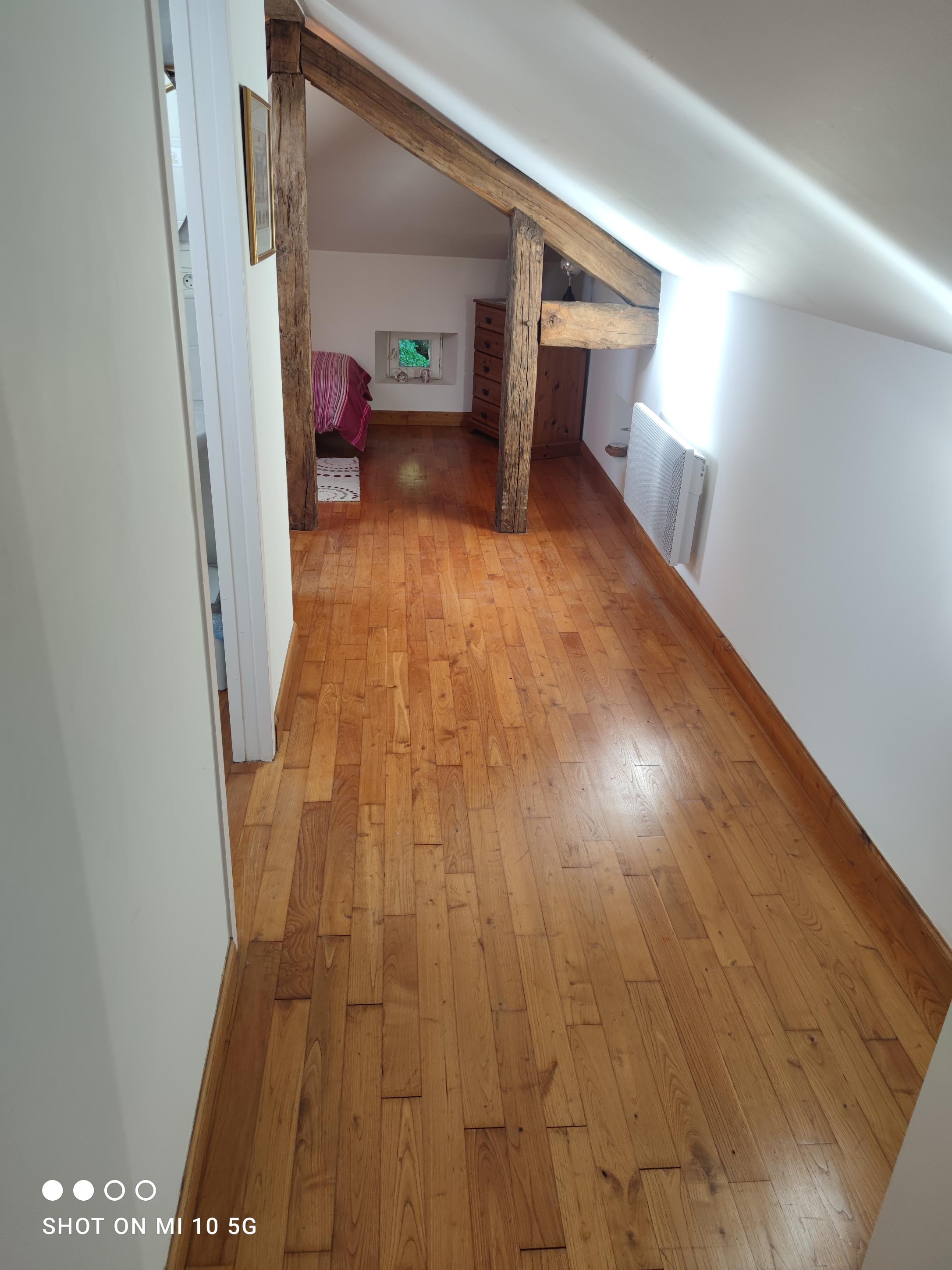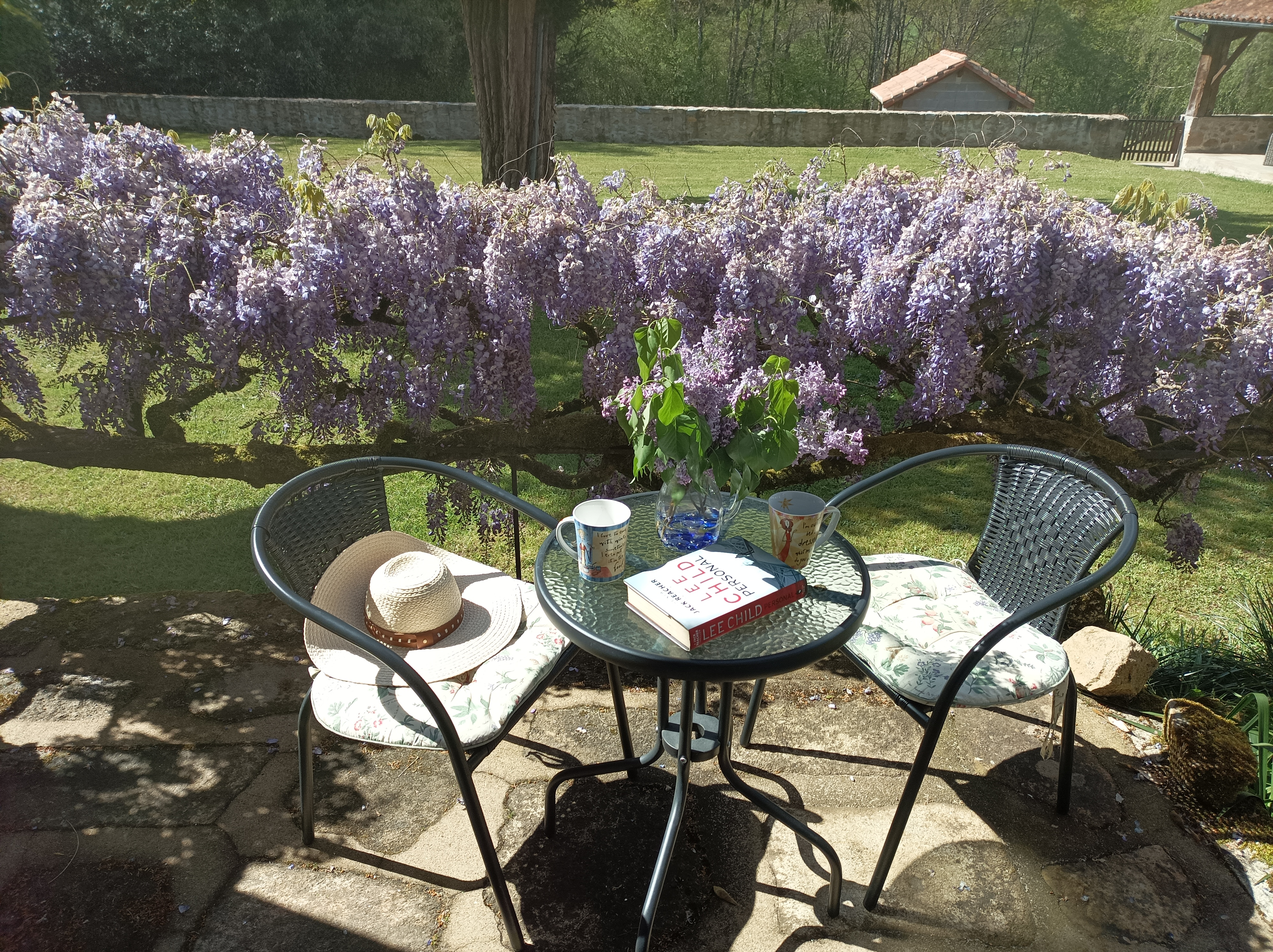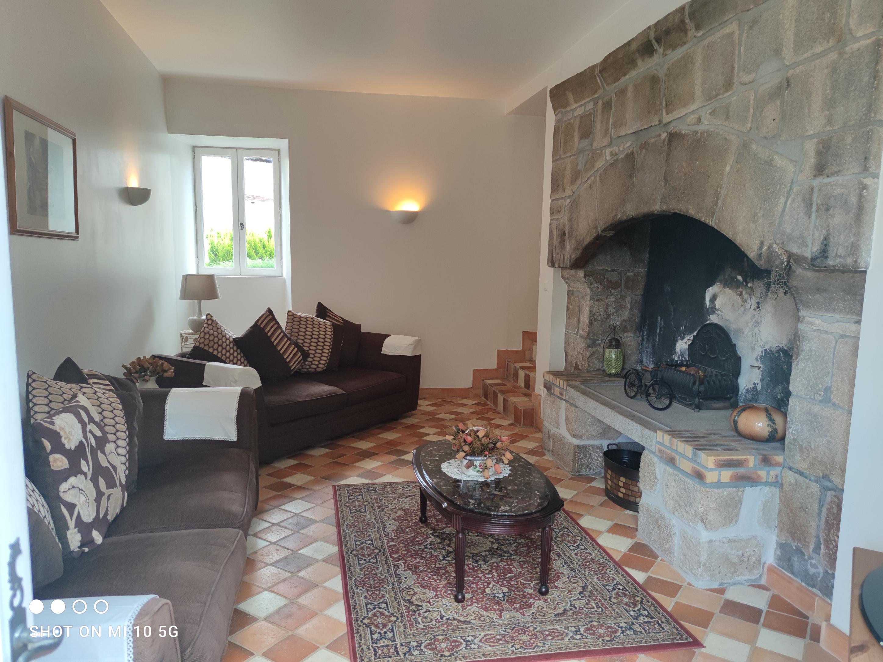 La Maison de Rebeyrat has three floors. The living room is on the ground floor and has a large open fireplace, ceramic tiled floor, satellite TV English channels and DVD player. French doors lead to the veranda and enclosed lawn, where you can take your morning coffee and listen to the birds chirping.