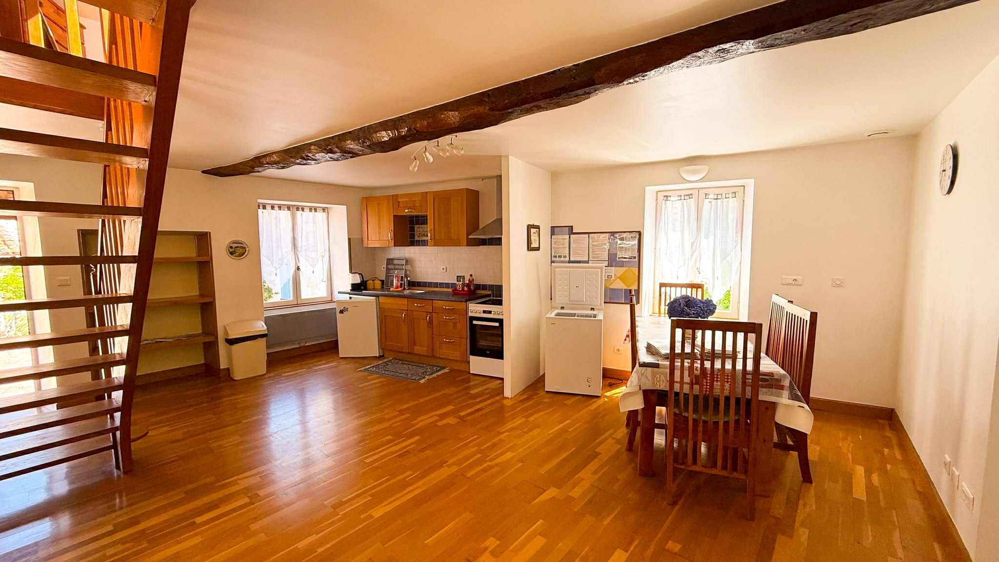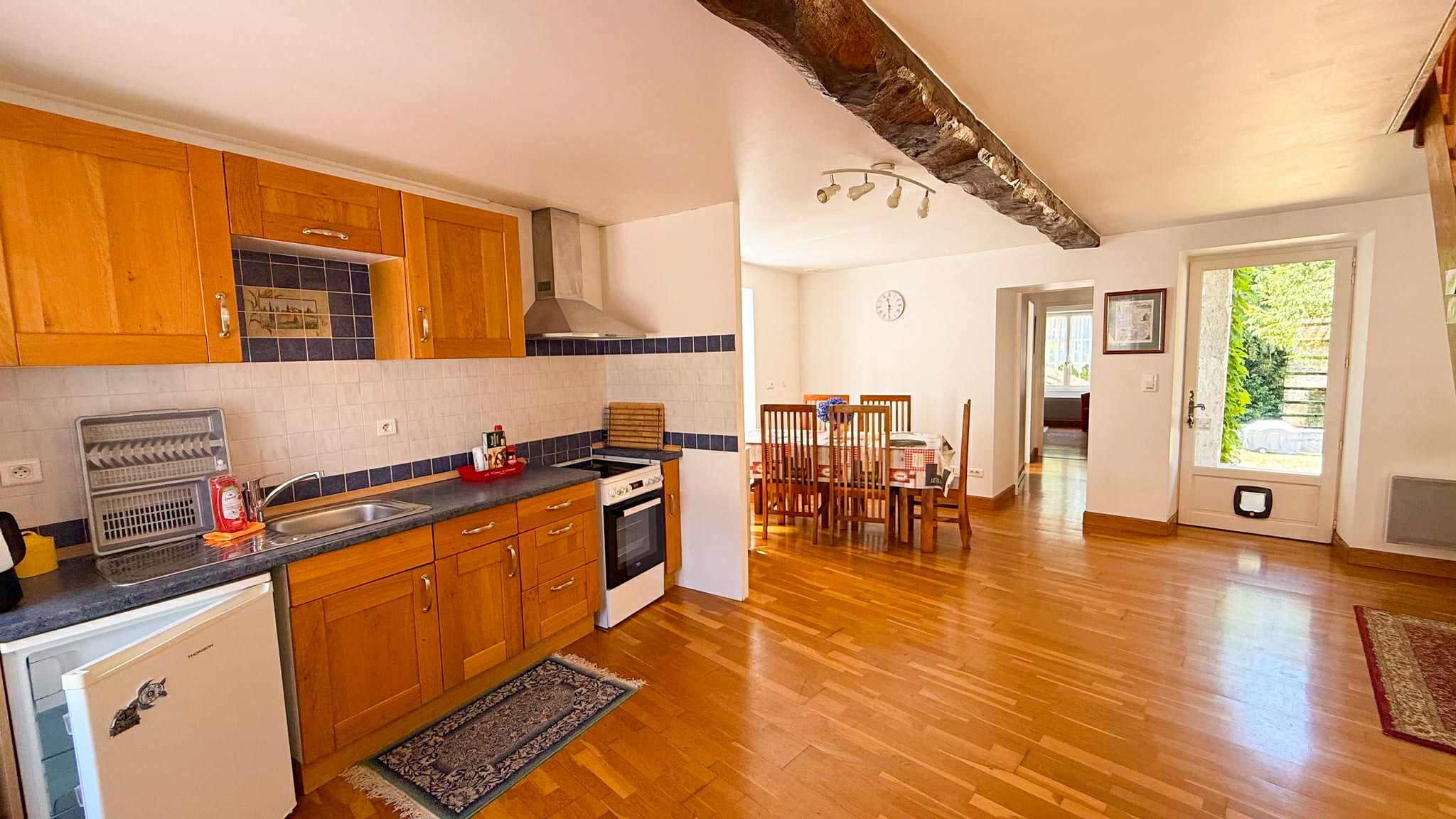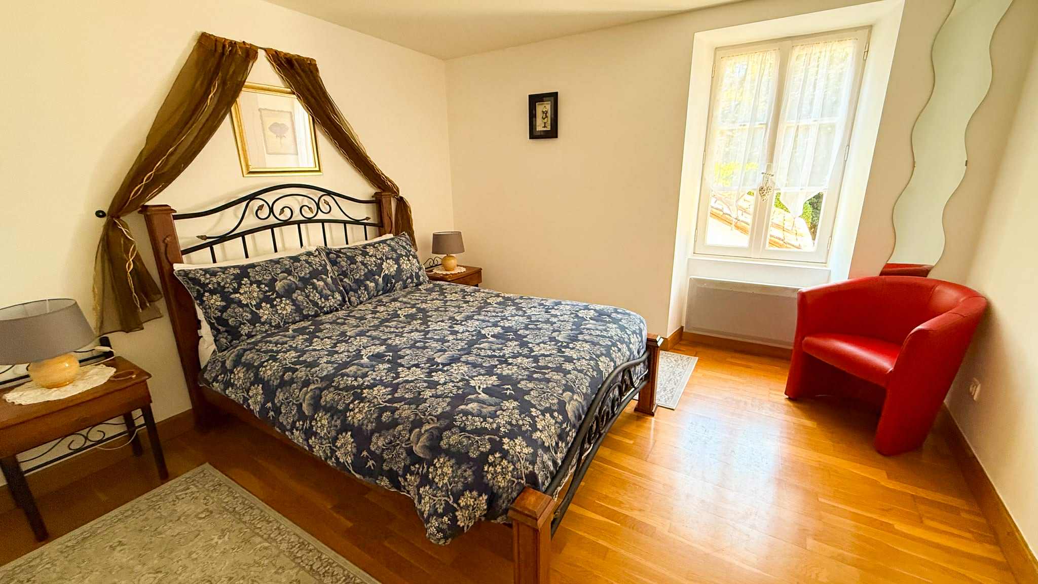 La Maison de Rebeyrat has three floors. The living room is on the ground floor and has a large open fireplace, ceramic tiled floor, satellite TV English channels and DVD player. French doors lead to the veranda and enclosed lawn, where you can take your morning coffee and listen to the birds chirping.