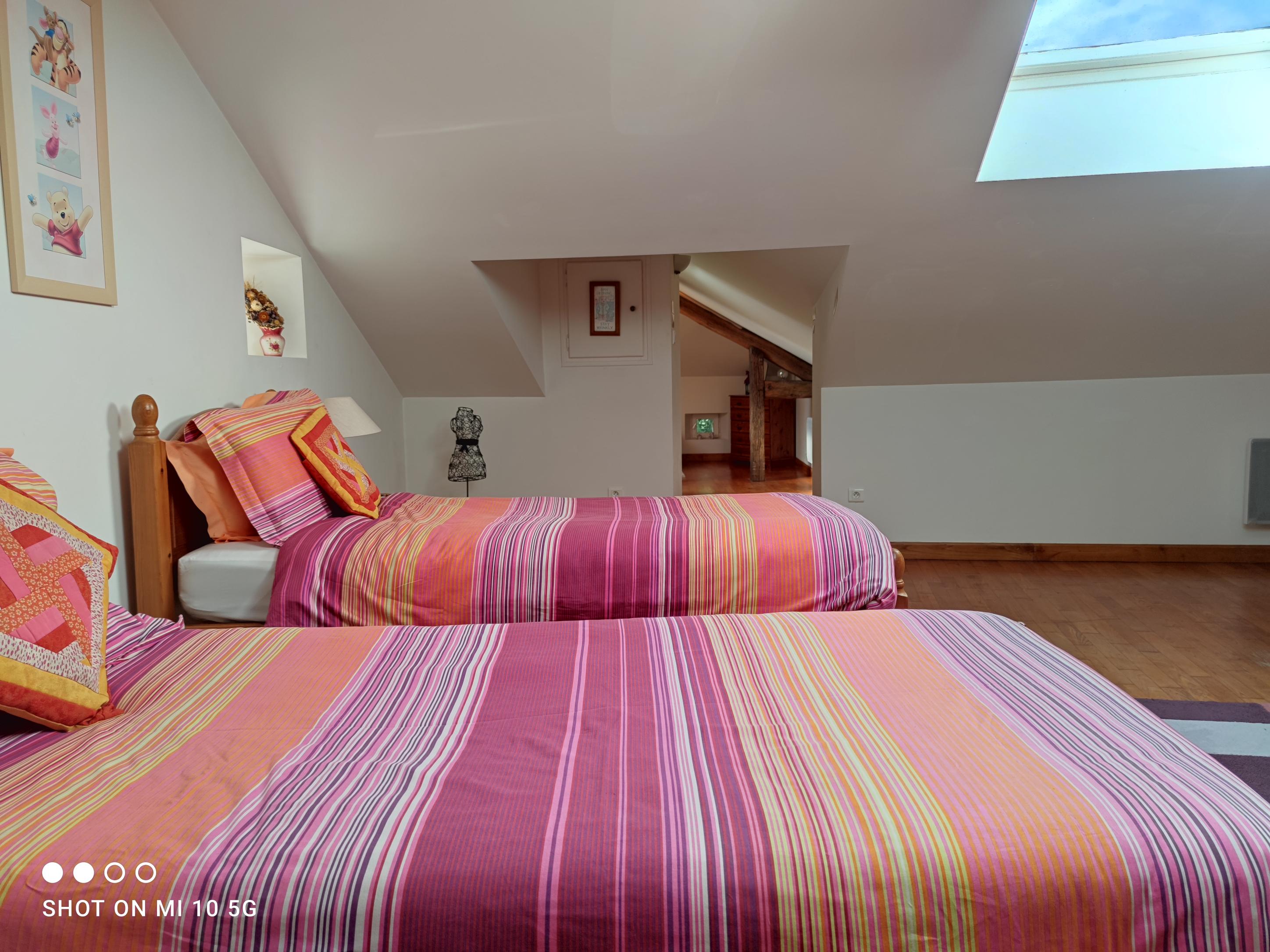 At the top of the open stairs there is a large room with twin beds and a single bedroom. Beds are made up upon your arrival, you just have to unpack your suitcases! These are separated by a passageway that has a room with a toilet and hand basin.