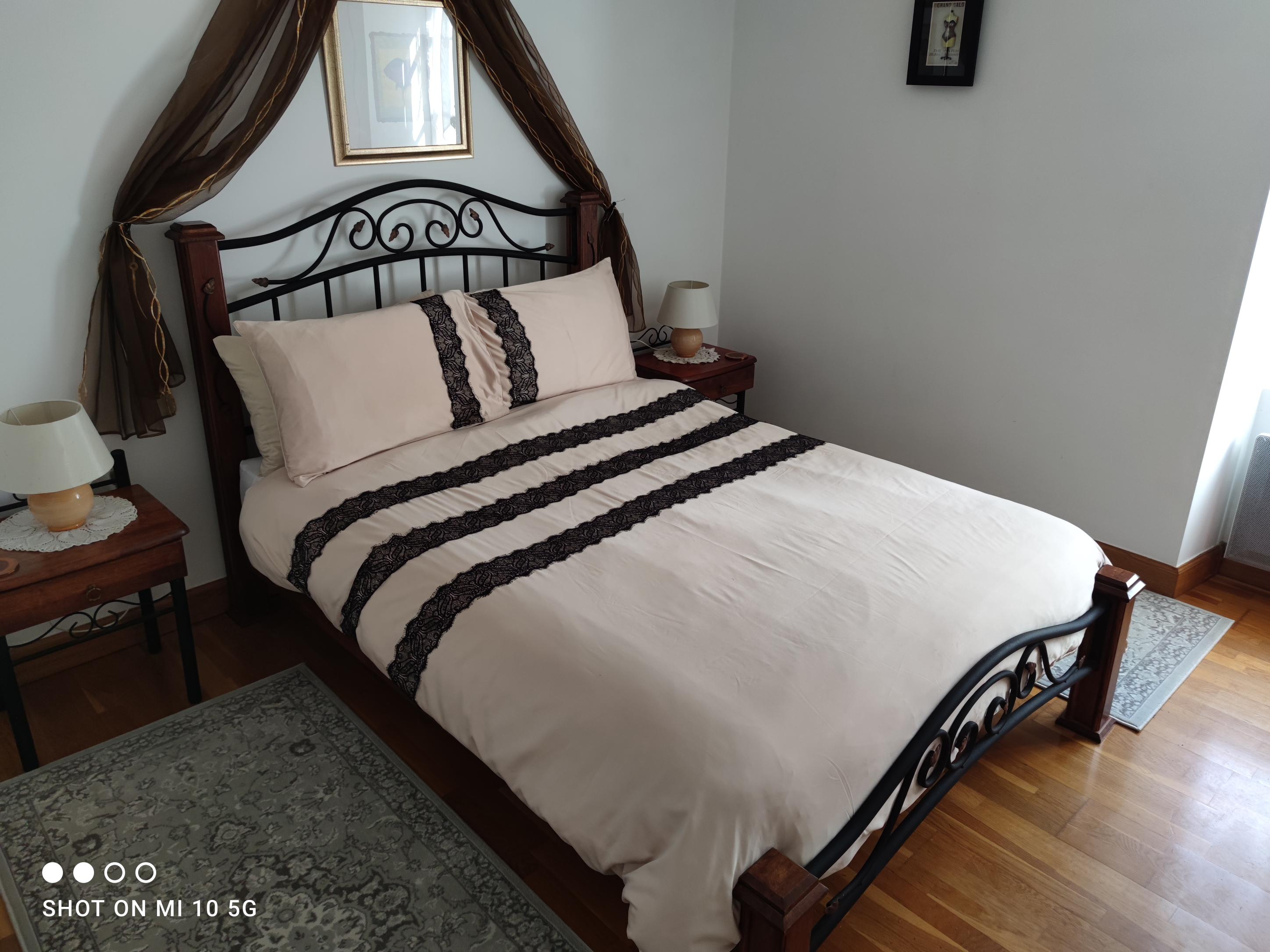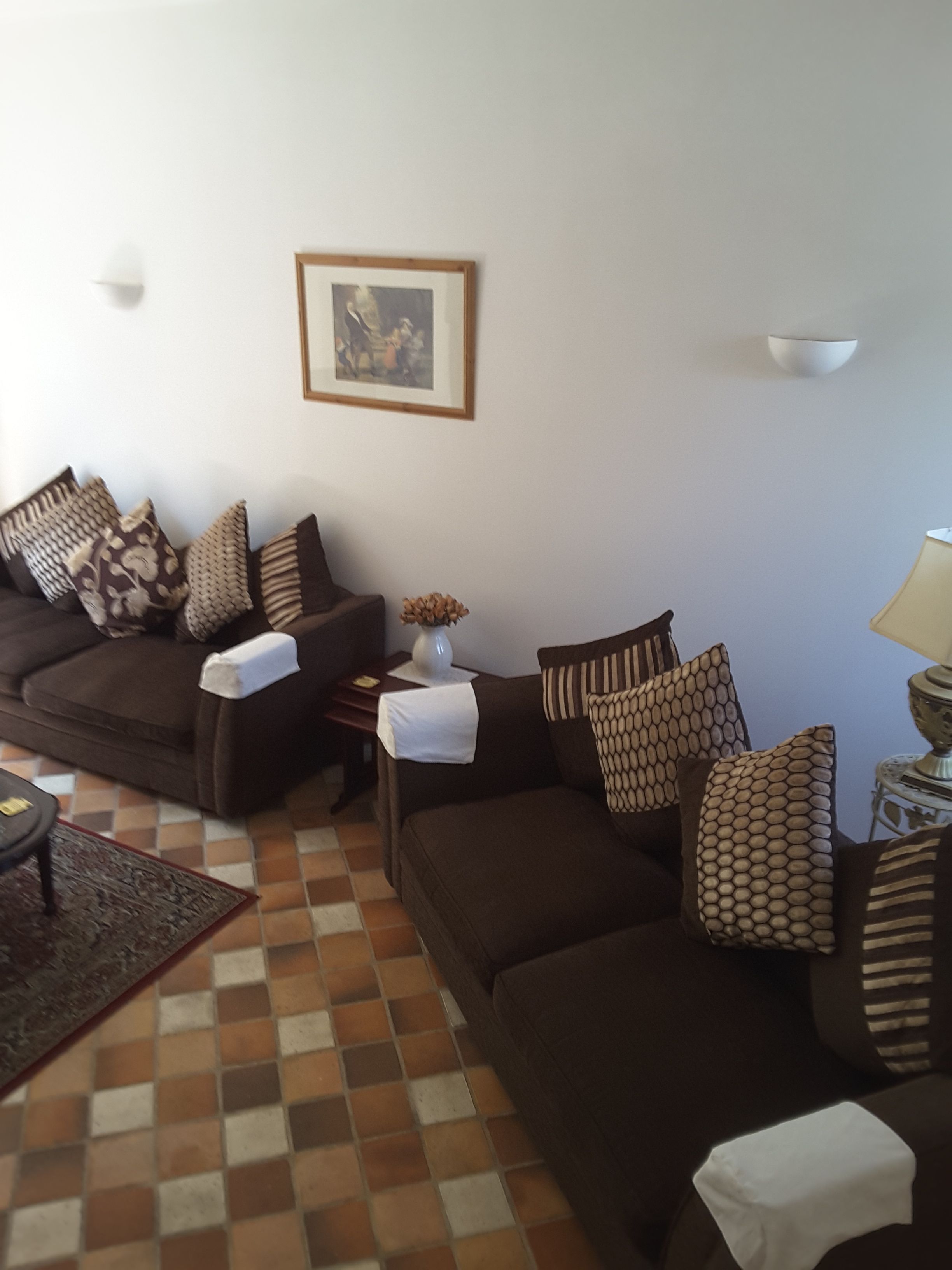 The downstairs toilet is tiled, with a hand basin and a shower, and is off the passage that leads to the double bedroom. There is an attractive view of the countryside and the pool from the bedroom window that create a peaceful atmosphere.